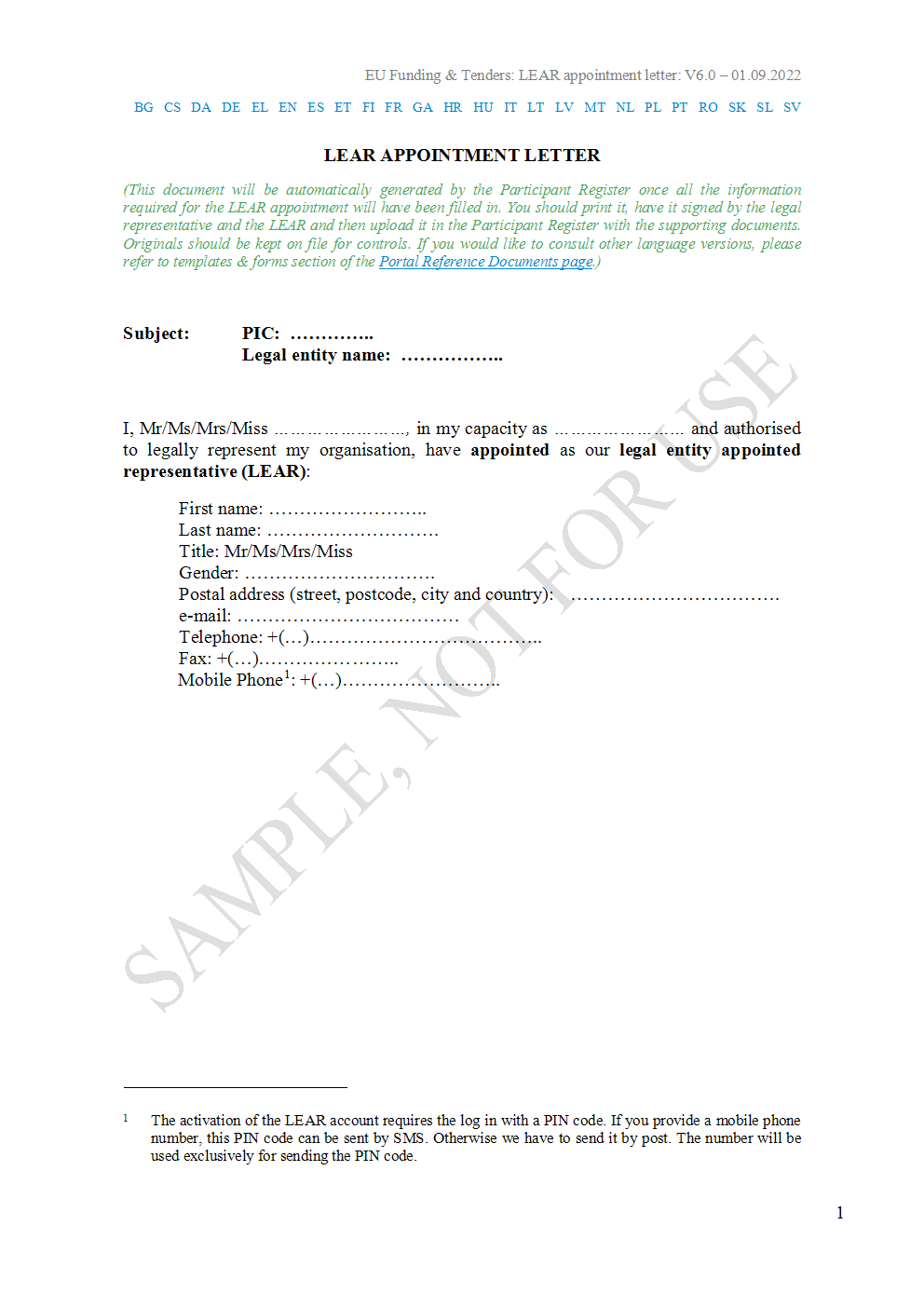 This concept of LEAR is very similar to the equivalent one for how organisations interact with the European Commission to perform certain tasks on behalf of their organisation, as part of its participation in EU funded grants, procurements and prizes that are managed via the EU Funding & Tenders Portal. To illustrate further, see below the description of LEAR from the Commission.